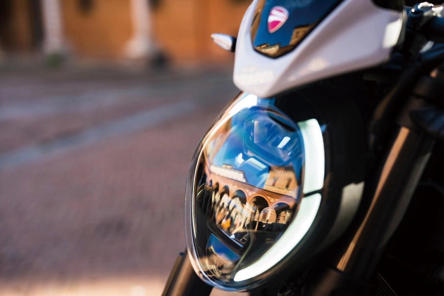 這種程度的裝飾為杜卡迪未來推出更高級的車型留下了空間,這裡推出的標準版和Plus版車型之間的區別僅僅在於前整流罩和乘客座椅罩。