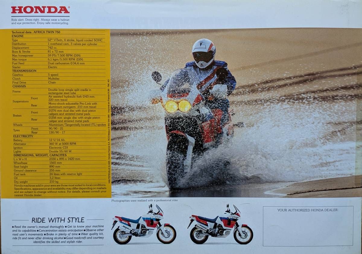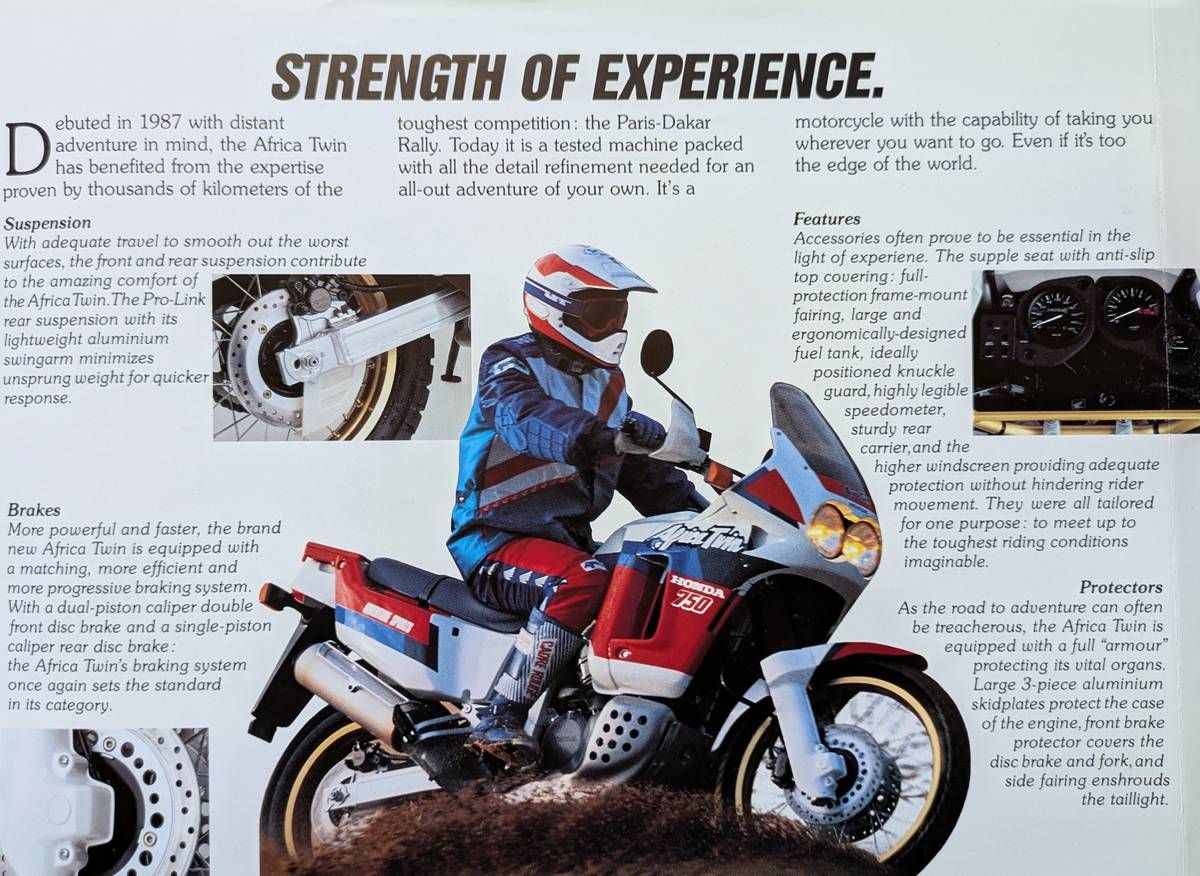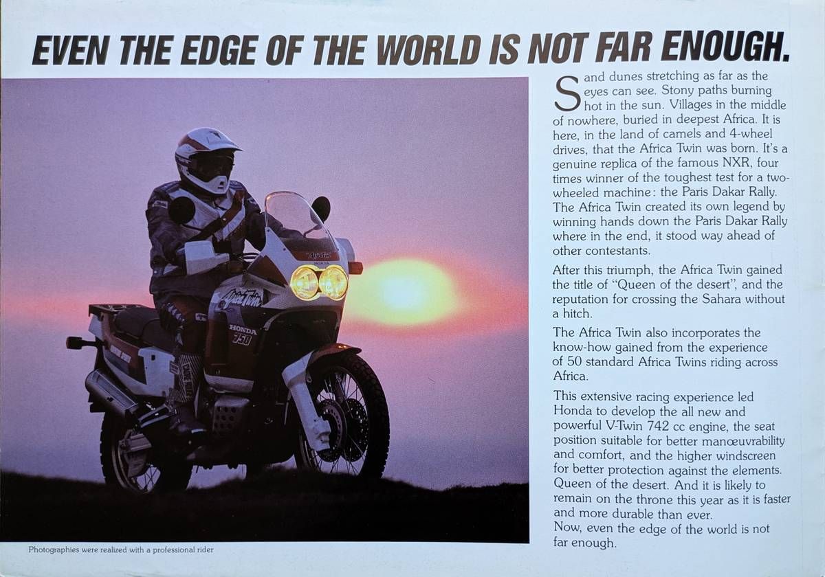 - 1988 年 5 月製作的 Africa Twin 型錄封面。