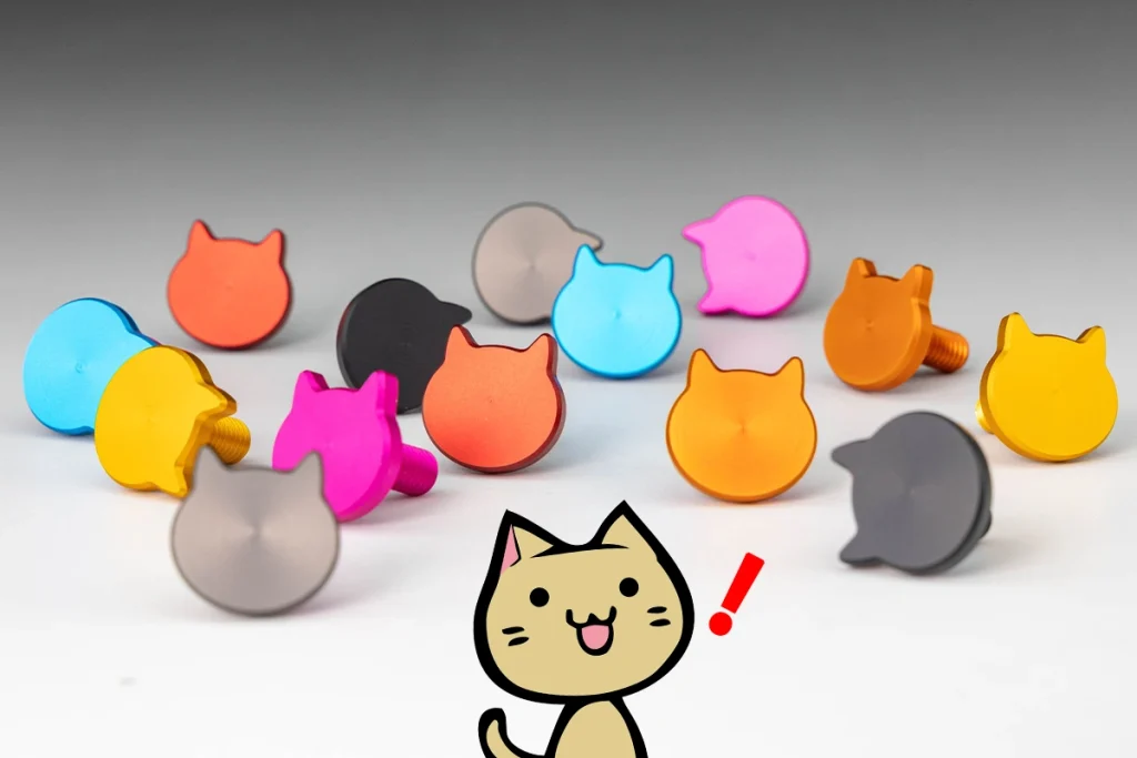 日本機車配件大廠 Kijima 推出了車牌專用配件貓咪螺絲 M6×15(にゃんばーボルト / Nyanber Bolt)」。這款令貓奴們愛不釋手的產品,是採用鋁合金切削而成的貓臉輪廓造型螺絲。全系列共推出 7 種顏色,售價為每顆 1,540 日圓(含稅)。