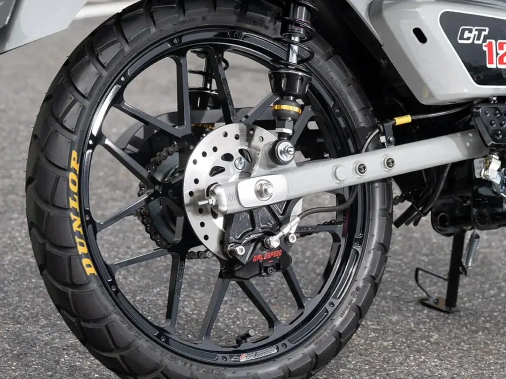 人氣不墜的 Honda CT125 Hunter Cub 迎來了 GALE SPEED 全新開發的鋁合金鍛造輪框「Type-X」。以 14 幅輻條模擬鋼絲框交錯編織的視覺意象。這款輪框在確保強度的同時,實現了比原廠鋼絲框更輕量化的表現,並提供金色、光澤黑與純粹白三種配色。