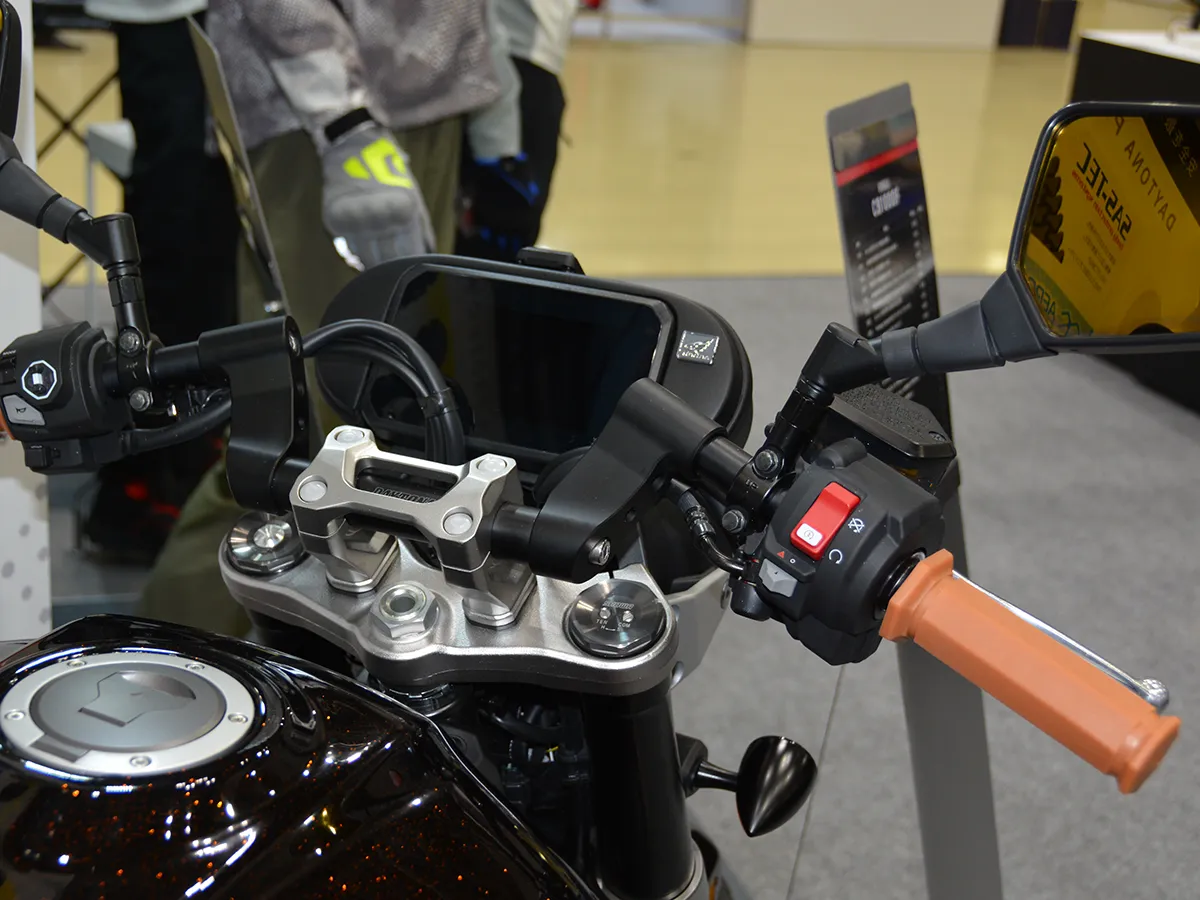從改裝零件、行李包袋到人身裝備,Daytona 致力於全方位的騎士生活提案。其改裝零件產品線極為豐富,針對 CB1000F 的專用配件也陸續發表。在本次車展中,Daytona 展出的車輛搭載了多項開發中新品: