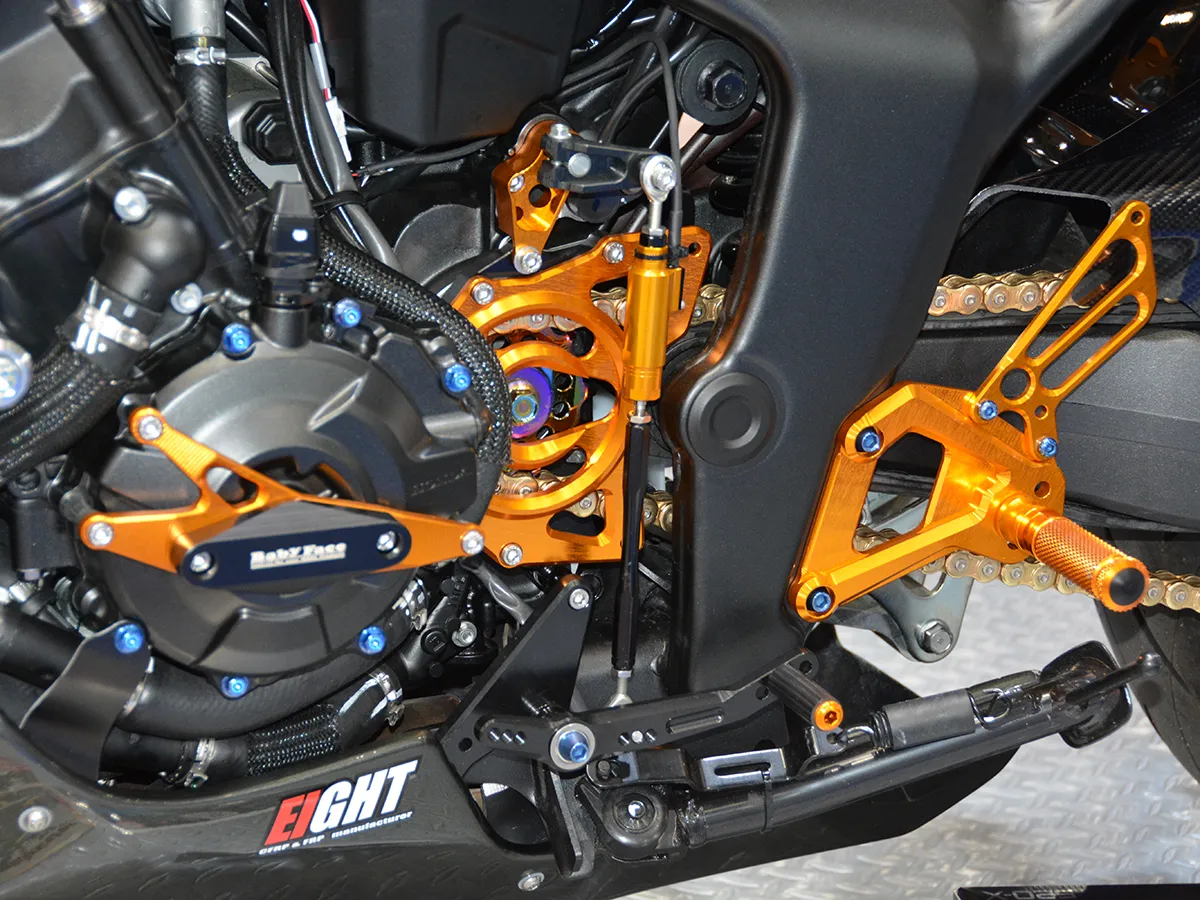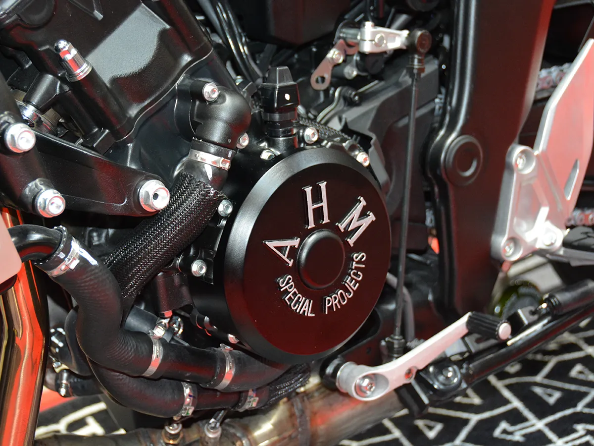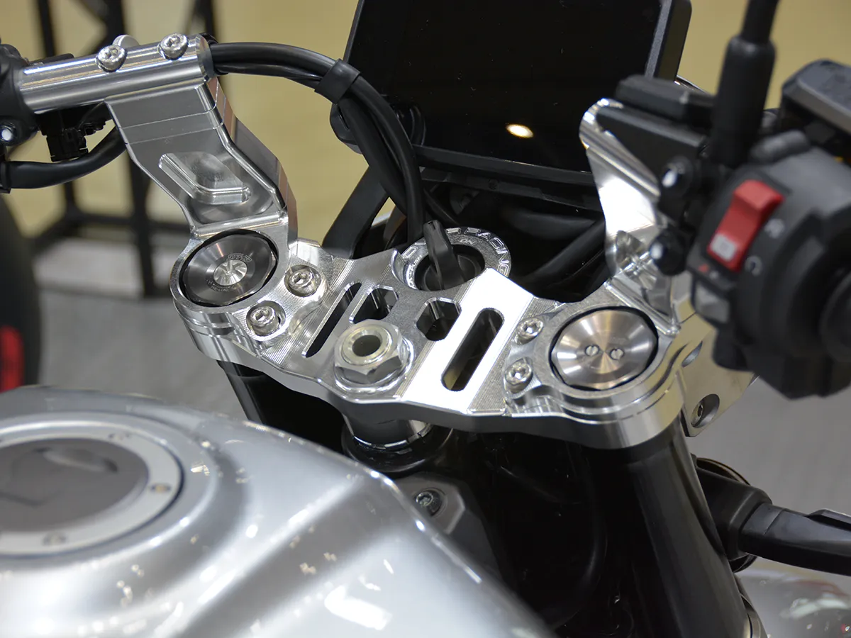 • 精緻細節: 腳踏與機油加注口蓋換上「Premium Zone」系列鋁合金切削件,並安裝了無土除套件(短牌架)與車身降低連桿。