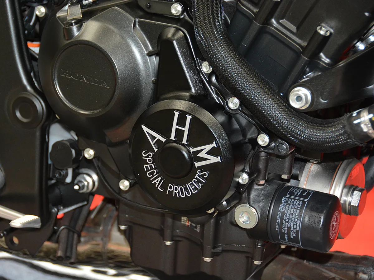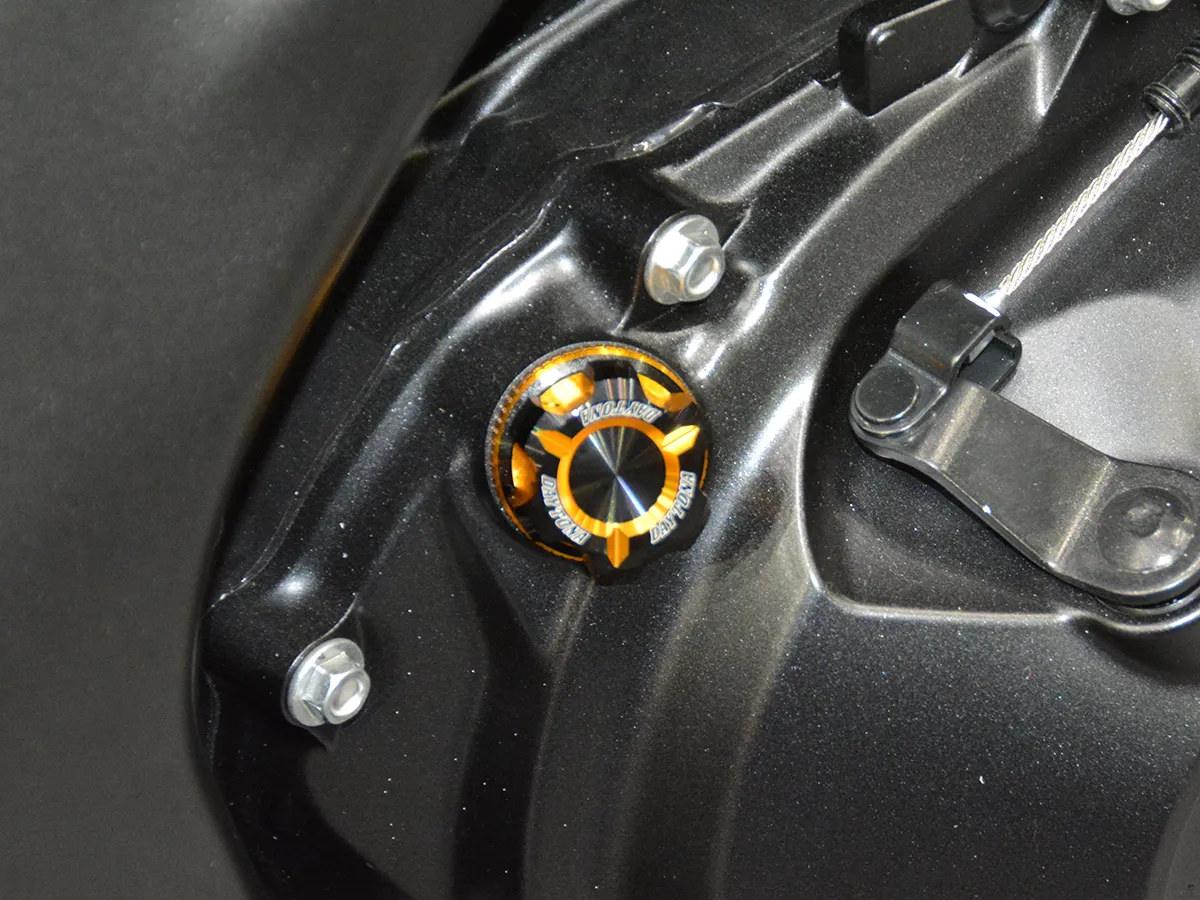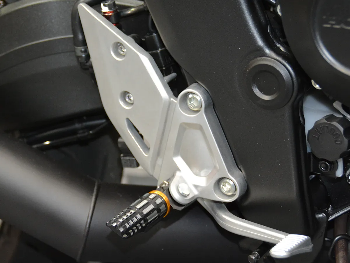 • 精緻細節: 腳踏與機油加注口蓋換上「Premium Zone」系列鋁合金切削件,並安裝了無土除套件(短牌架)與車身降低連桿。