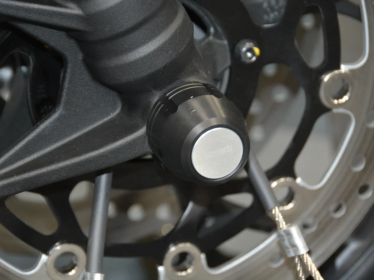 • 車體防護: 裝配引擎防摔滑塊(防倒球)、車身保護滑塊以及鈦合金水箱護網。