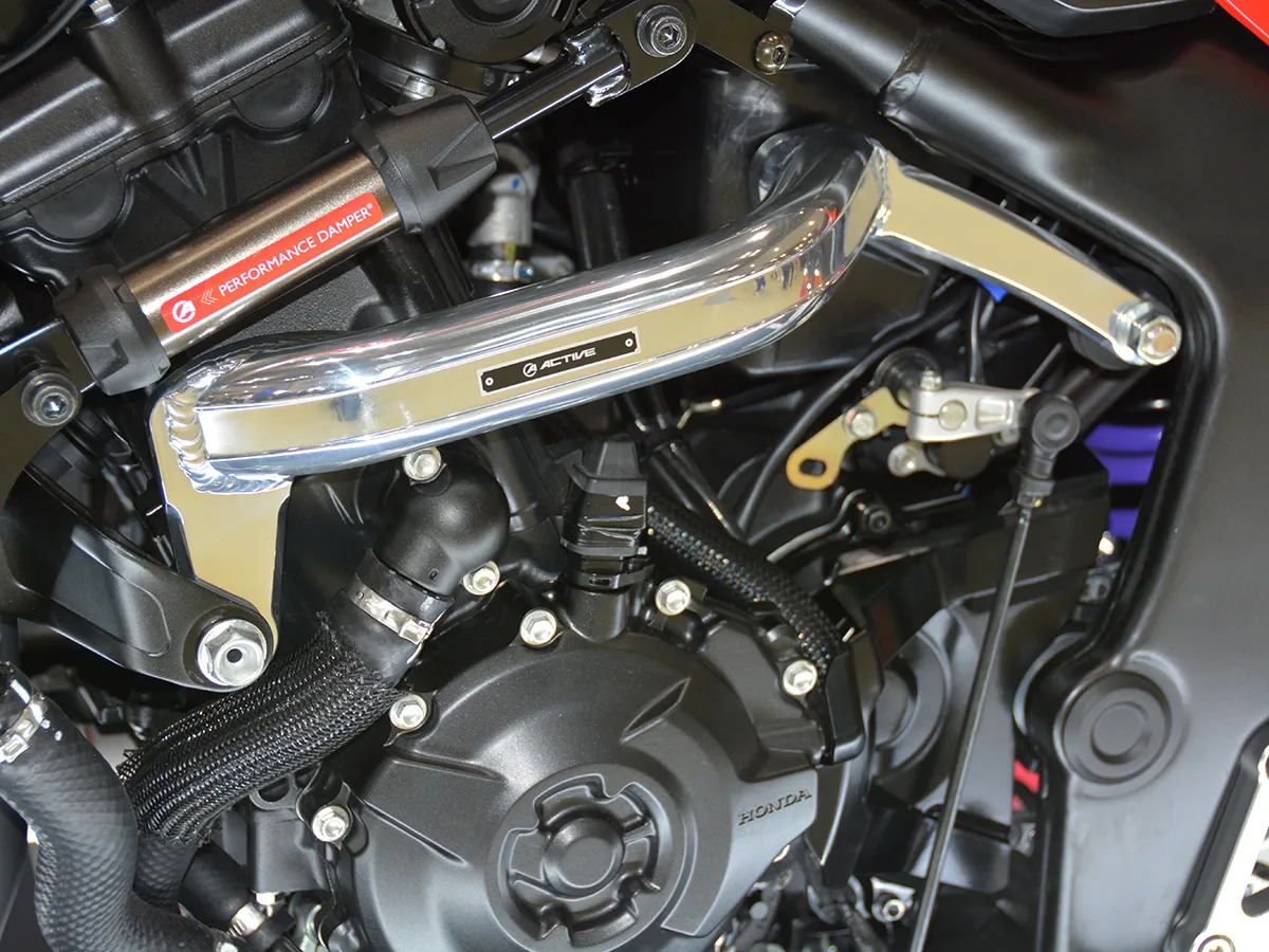 代理 Gale Speed 與 Hyperpro 等高性能品牌的 Active,本次展出的 CB1000F 以底盤強化為核心: