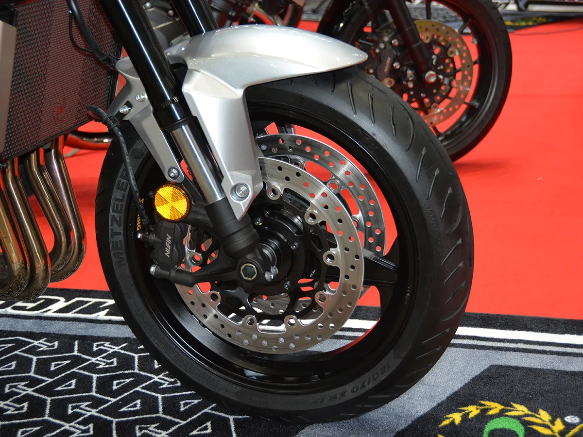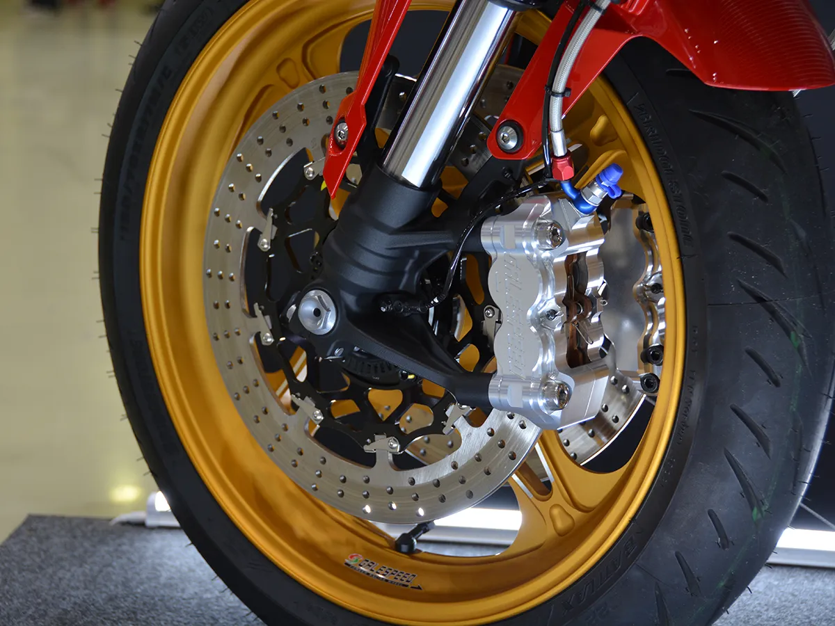 • 頂級規格: 配備 Brembo 484 Cafe Racer 前卡鉗與 GP2-CR 後卡鉗,全車採用自家的 Swage-Line 金屬油管。
