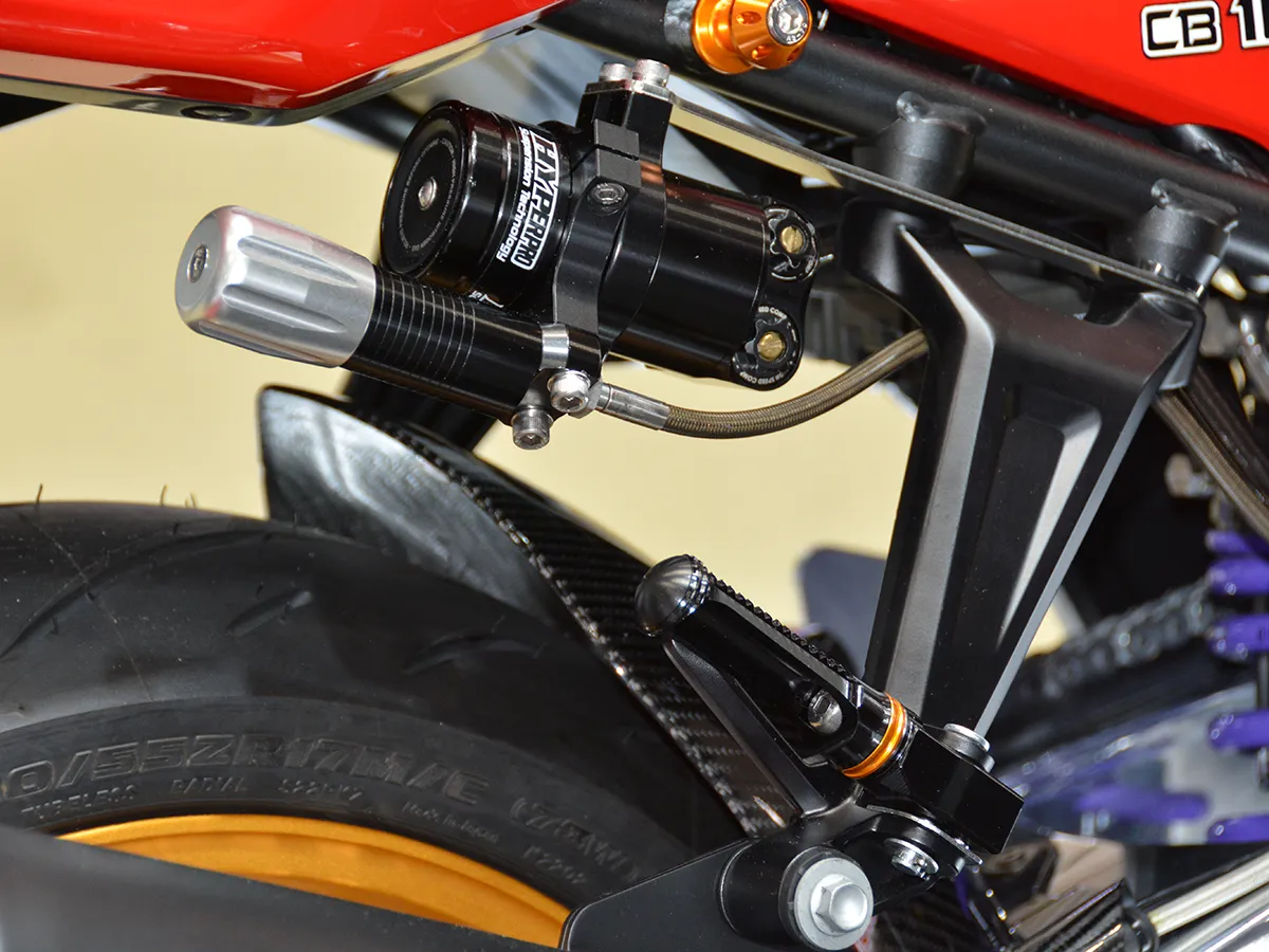 • 外觀套件: 尾部整流罩(尾殼)與前土除採用經典 CB-F 風格的 FRP 製品,車身彩繪則以舊款 CB-F 為靈感設計。