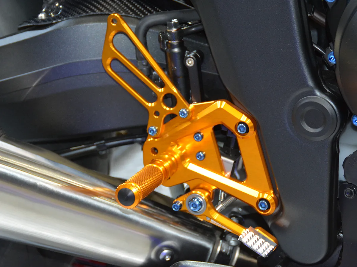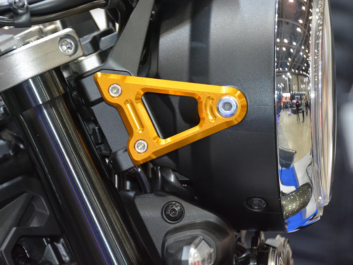 • 切削工藝: 所有鋁合金改裝件均採用金色陽極處理,包含大燈飾板、賽車掛勾、腳踏後移與鏈條蓋。