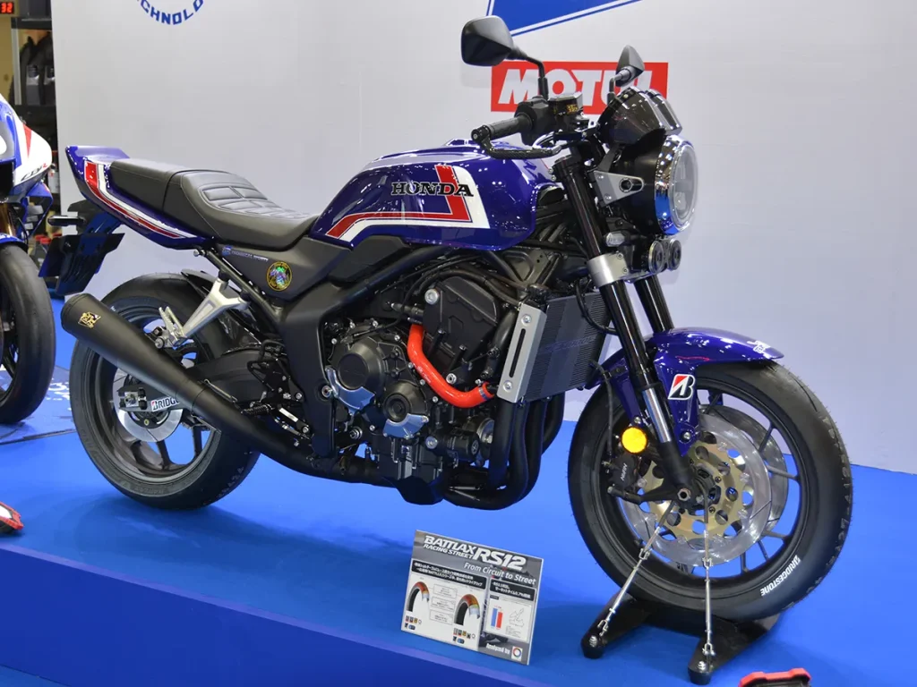 以賽車製造商聞名的 TSR,本次展出了兩輛風格各異的 CB1000F。第一輛為新作,採用深藍色底搭配紅白線條的經典塗裝: