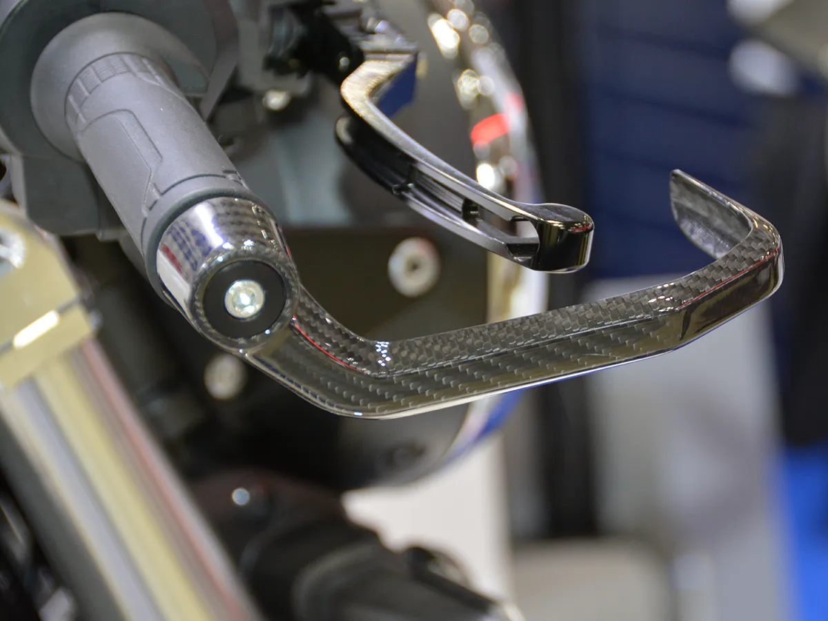 - 乾式碳纖維煞車護弓,為把手周邊增添強烈跑格。