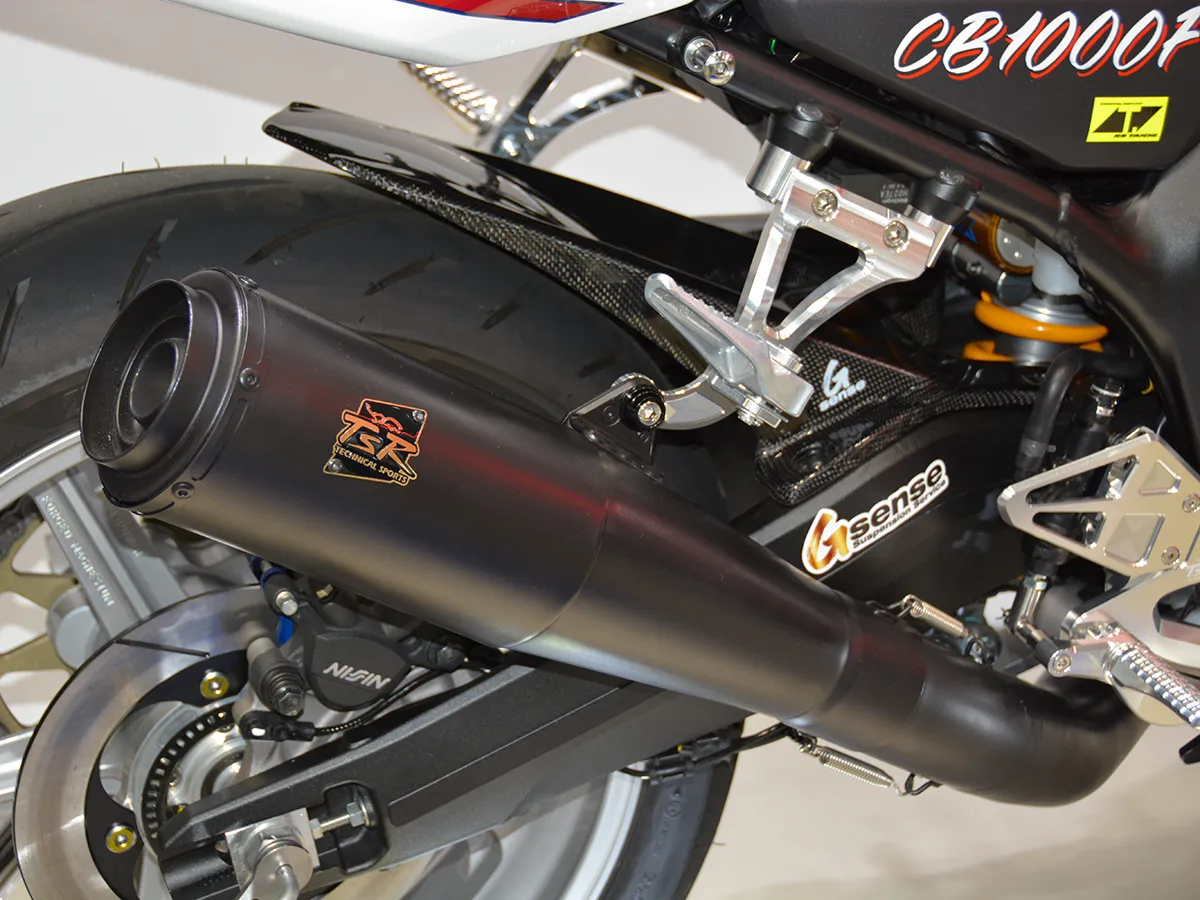 - 消光黑Megaphone造型的「STD-TYPE 全段排氣管」,讓人聯想起 CB900F Superbike。