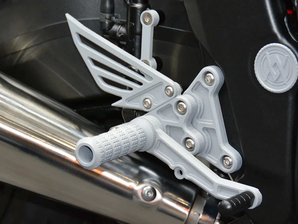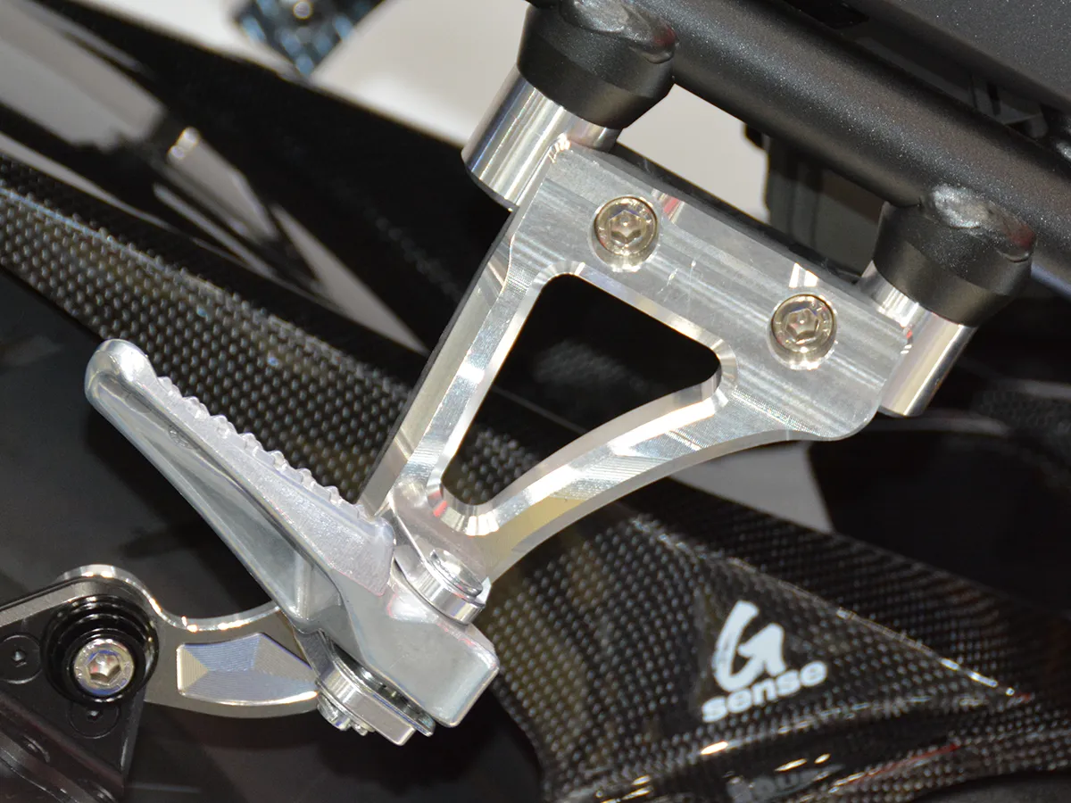 - 造型銳利的後移腳踏套件,營造出更具戰鬥感的騎乘姿勢。