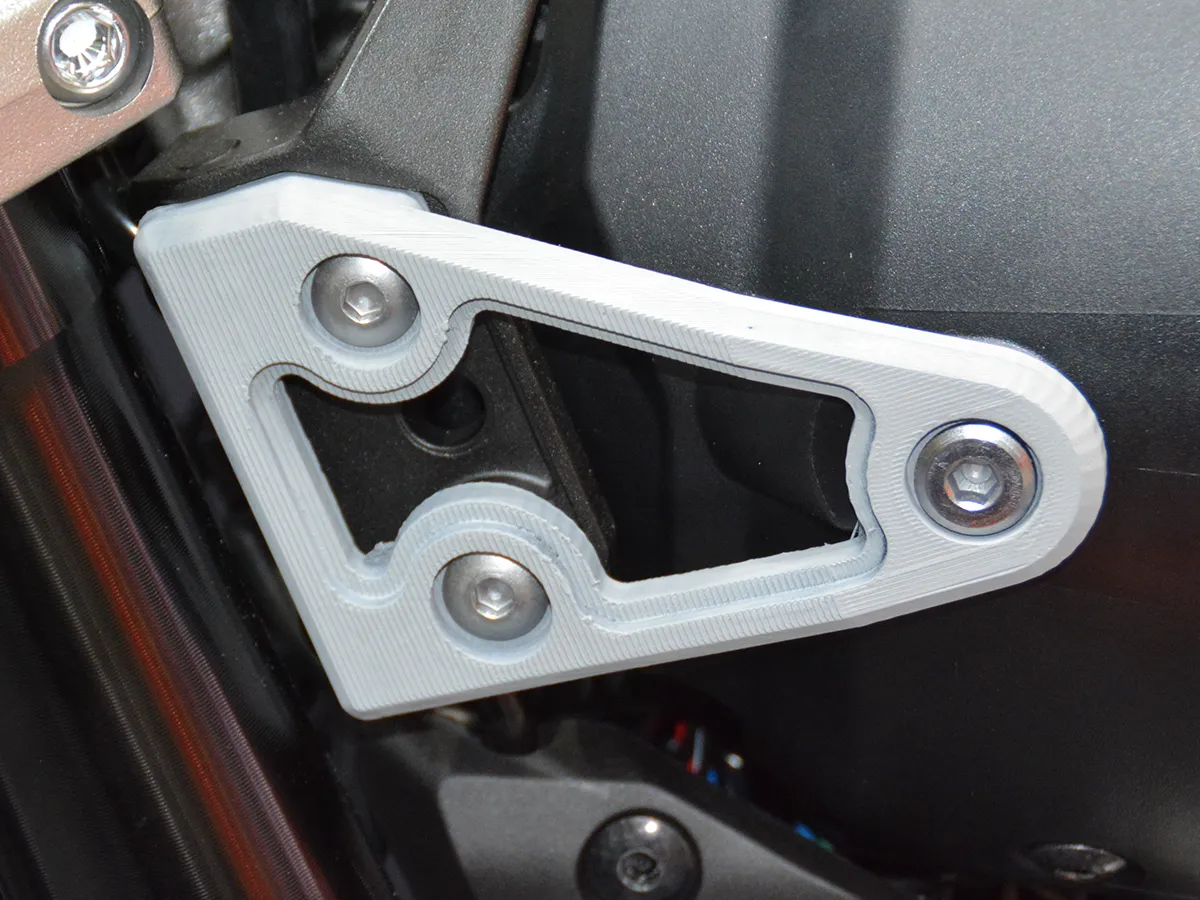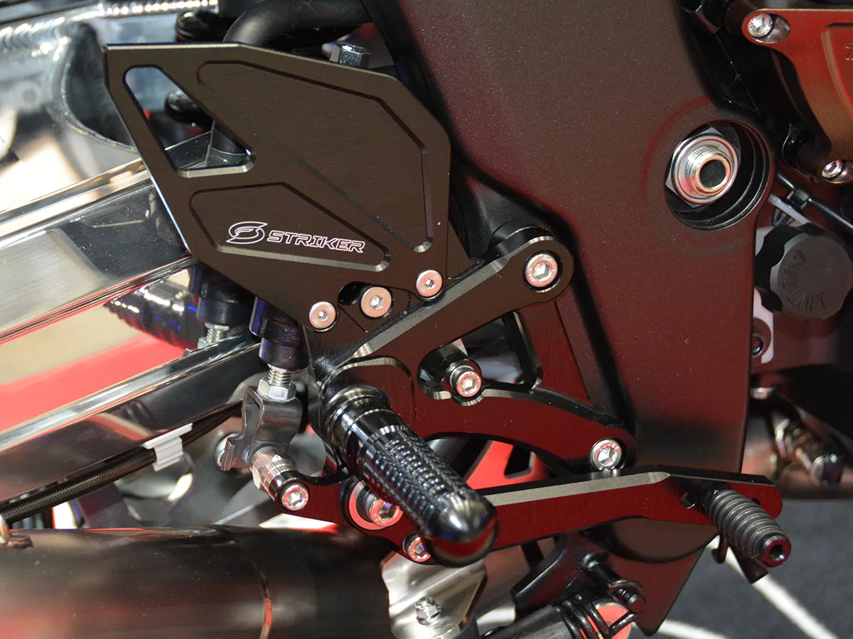 戰鬥姿勢: 橫置於三角台上的防甩頭與「STRIKER FORTI」後移腳踏,大幅提升運動化操駕體驗。