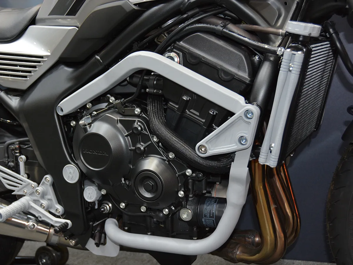 - 副車架、車架下管、水箱蓋側護桿的組合,徹底翻新引擎周邊層次。