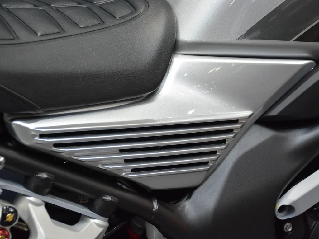 「鋁合金鰭片側蓋」以經典設計結合現代工法,為側邊視覺注入靈魂。