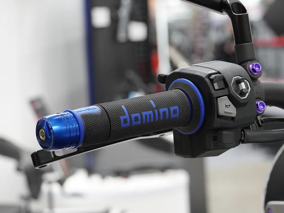 - 換上設計感十足、帶有彩色 Logo 的 Domino 專業握把套。