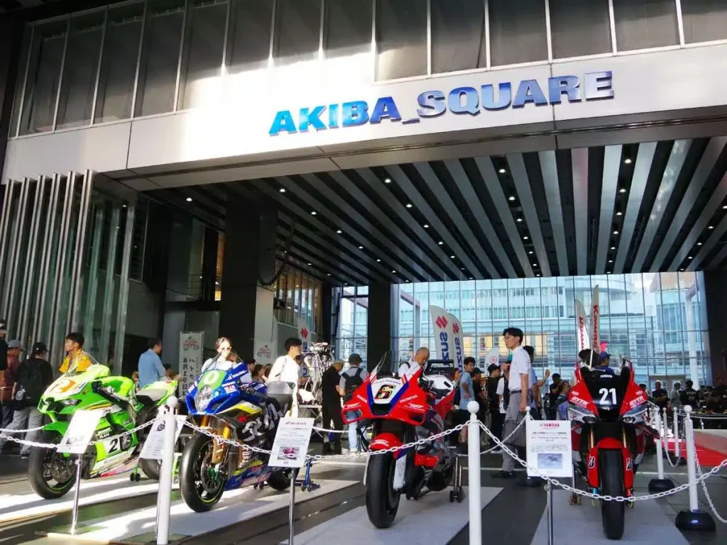 透過多元活動展現摩托車魅力。圖為在秋葉原舉辦的「HAVE A BIKE DAY」摩托車之日活動。現場展示了四大廠的賽車及可供跨坐的市售車款。