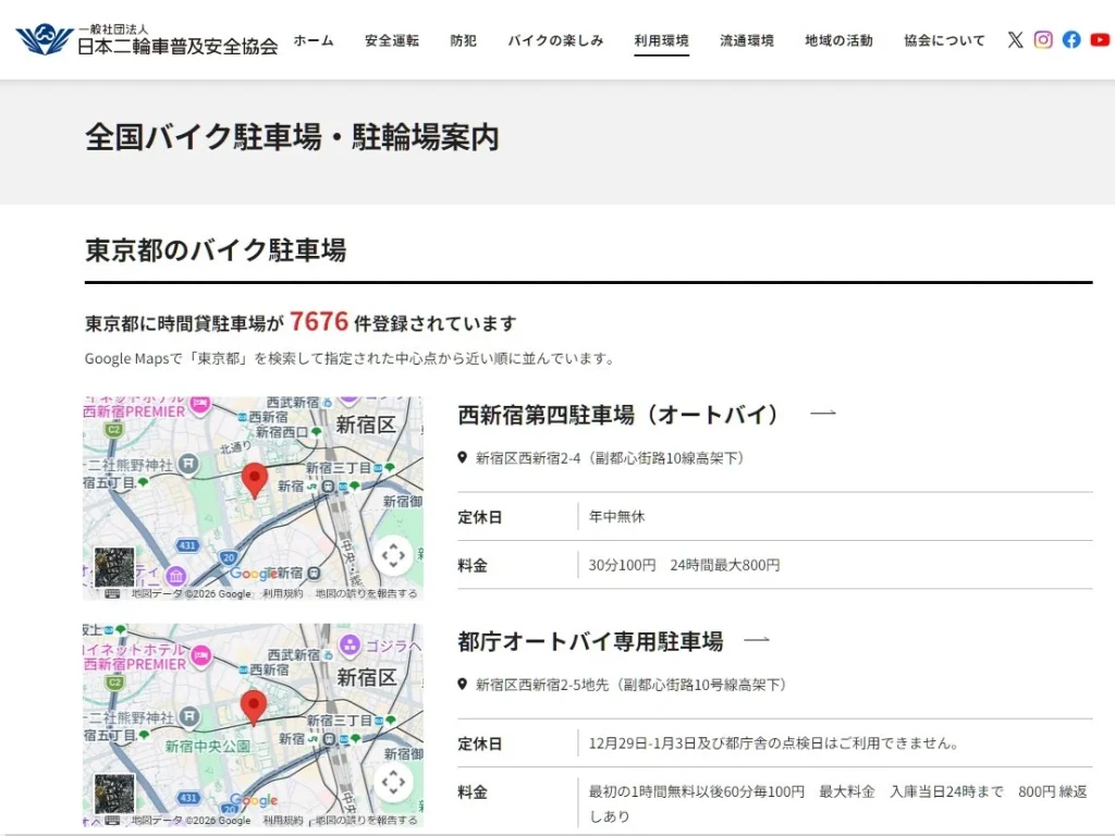 日本二普協自 2011 年起推出「全日本摩托車停車場指南」網站。具備 GPS 搜尋鄰近停車場的功能,並設有讓用戶填寫「希望設置停車場」的需求表單,致力於提升便利性。