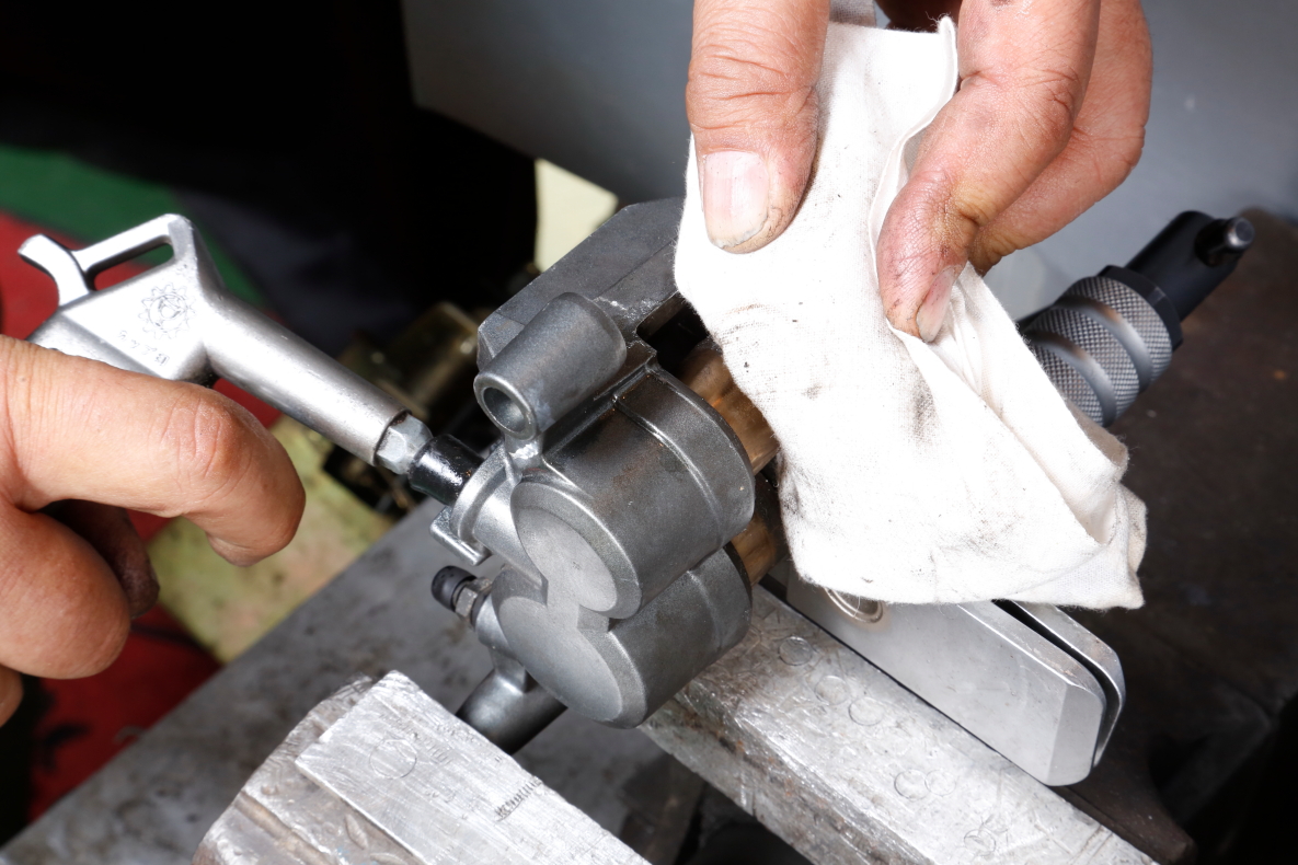 ▲Zephyr卡钳是单向型因此易于清洁,但如果是对向活塞卡钳,则难度会大大增加。为维修的麻烦,最有效的方法是定期清洁卡钳并喷上橡胶密封剂以擦拭活塞,以及活塞油封和防尘圈上涂抹少量橡胶油脂,因此润滑脂更安全的。最后,请正确依照维修手册规定系数的煞车油的使用。