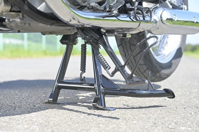 除了侧驻,W800也标准配备中驻,因此可以很容易的润滑链条、清洁轮框或维修轮胎等。