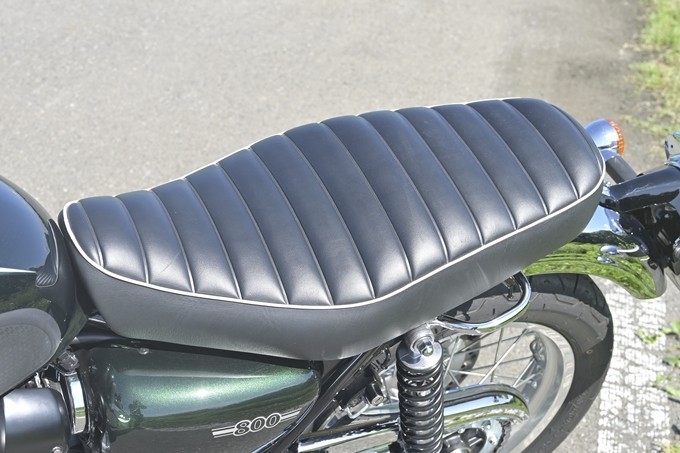 与W800 Street那向上又向后、宽度达925mm的把手相比,W800的把手接近一字型、宽度790mm的把手,因此与W800 Street相比,W800的骑乘姿势更具动感。