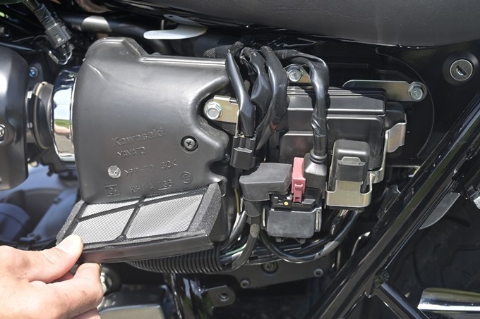 两侧侧盖不是由塑胶而是由金属制成的具有豪华感,右侧收纳的是抽屉式空气滤清器,左侧则是保险丝盒及电池。