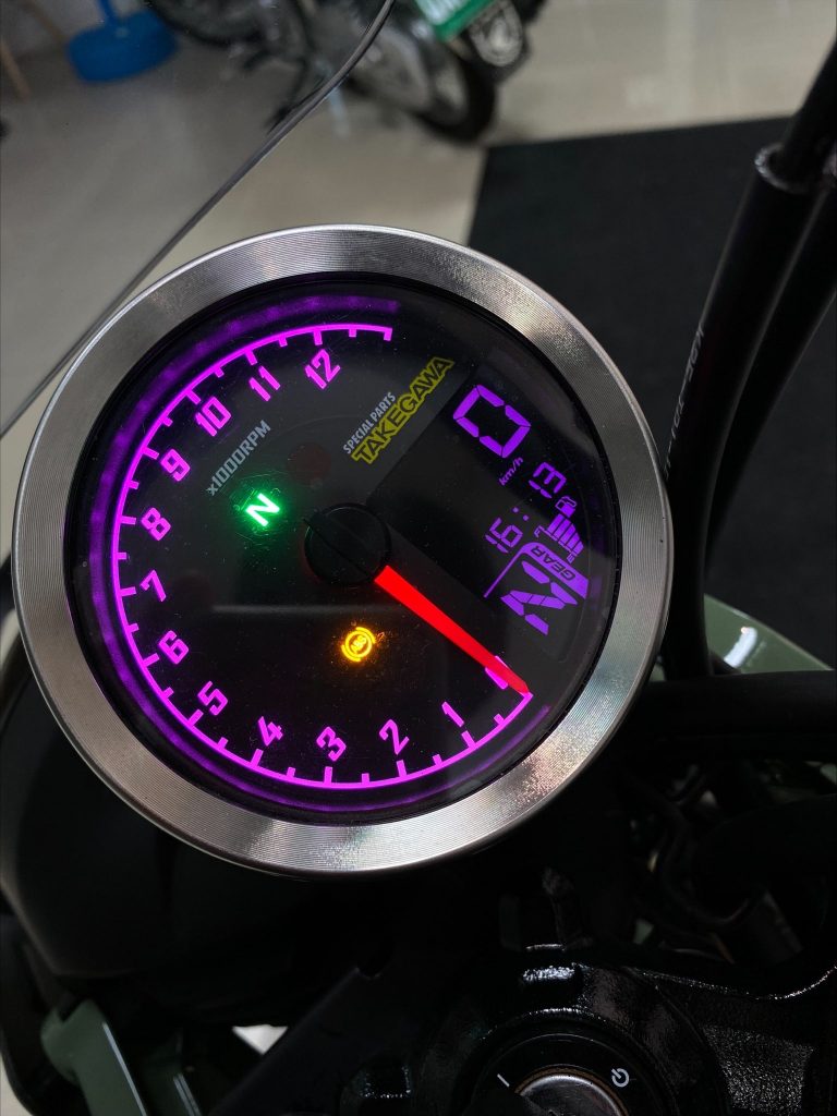 虽然CT125只有4档,但由于车主是档车新手,而且很少接触循环档的车子,SP武川的这组仪表除了可以选择很多背光颜色增加个性外,最重要的就是多了档位显示,但这档位显示功能与一般我们认知的档位显示不同,SP武川利用车速与转速的配合去”知道”车子在几档,安装后的调适非常的有趣,虽然车辆静止时换档会无法知道确切的档位,但却可以防止由最高档位误入空档的窘境。