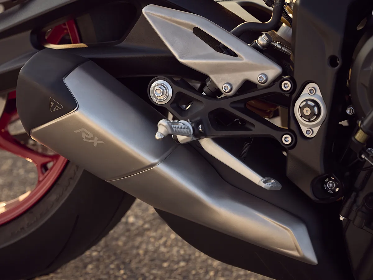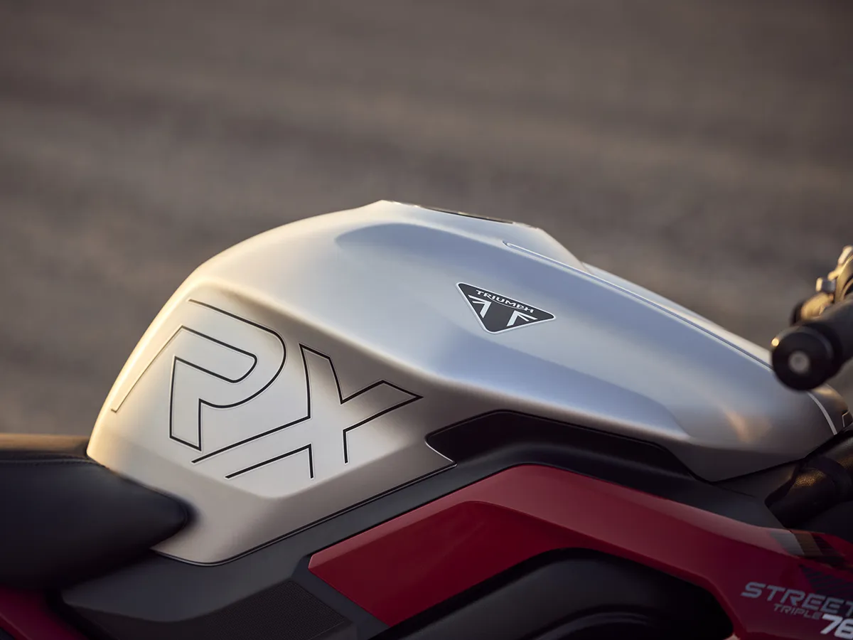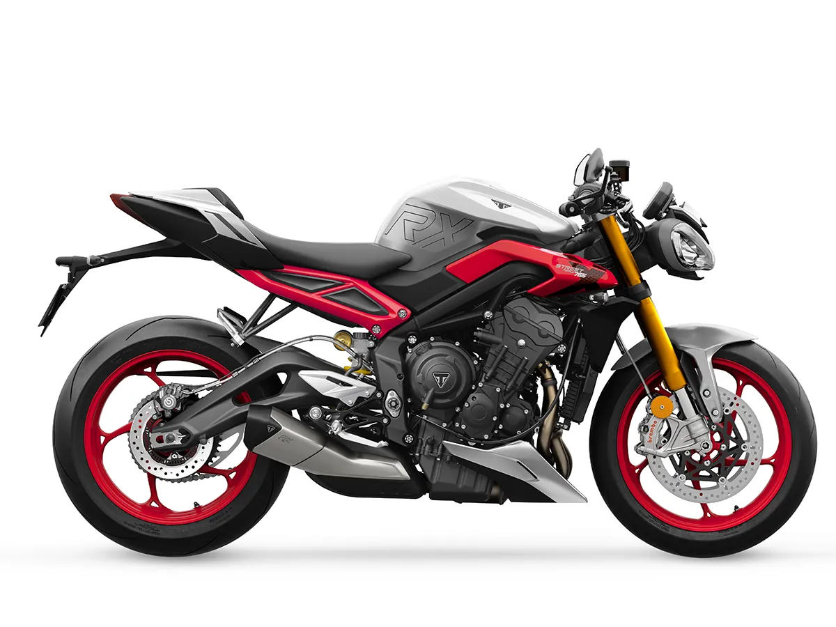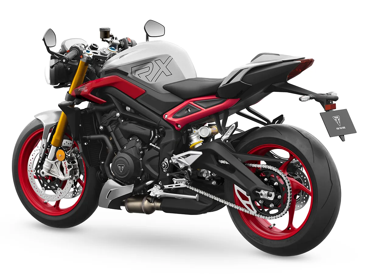 Triumph 产品线中“RX”之名象征著更强烈的运动性能定位。2015 年首款“Street Triple RX”便是标准车型之外更为犀利和激进的选择,充满锐利的个性与外型受到了骑士的青睐,确立了“RX”作为赛道性能与独家性的标志地位。“RX”之名在2025年初随着“Speed Triple 1200 RX”的复活而重新被启用,并继续沿用在 2026 年式的 Street Triple 车型,并结合了以赛道导向的人体工学与顶级配备,体现了Triumph 致力于开发一款无论在公路或赛道上都能展现卓越性能之电自行车(摩托车)承诺。