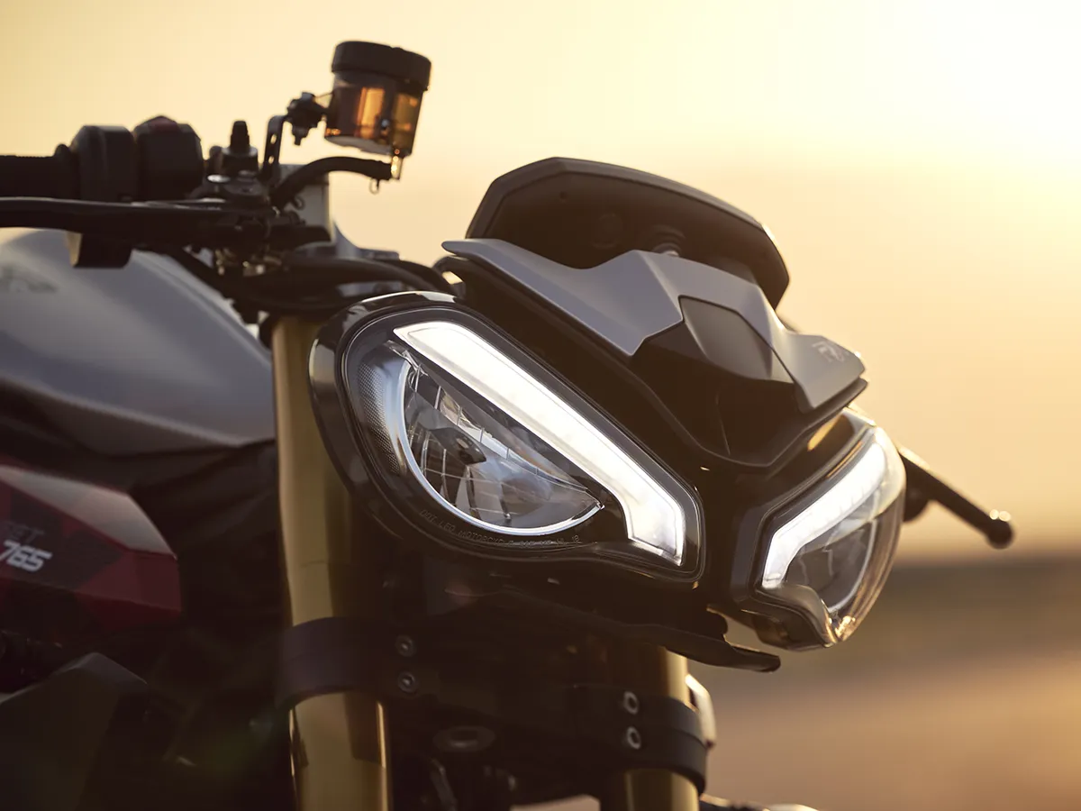- Street Triple 系列共通的、设计独特的 LED 双头灯。