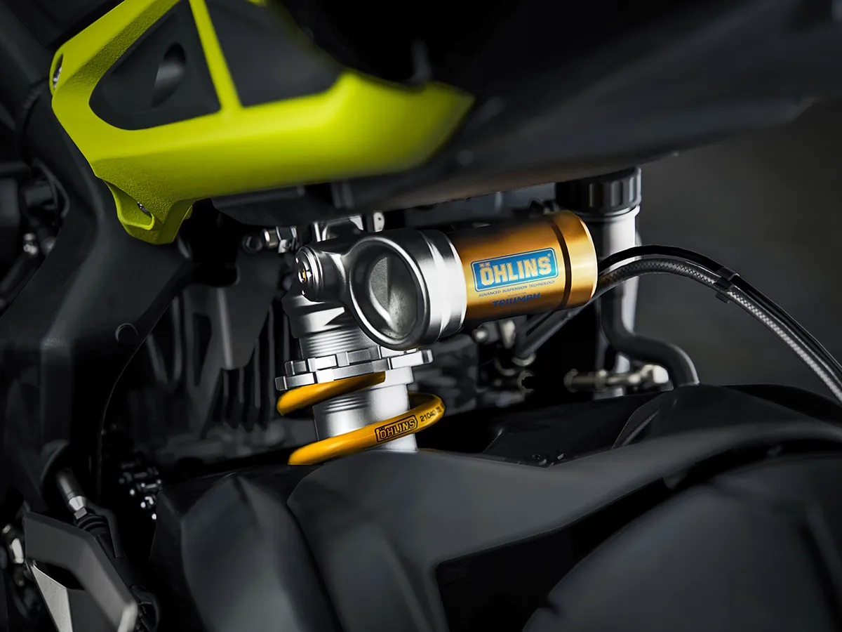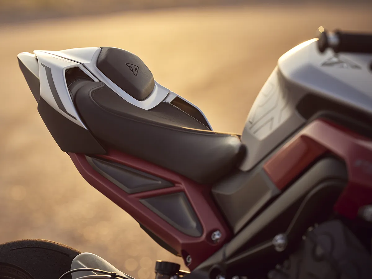 电控系统则包括 5 吋 TFT液晶仪表、专属 ABS 赛道模式、优化的弯道 ABS 与循迹控制、以及无需操作离合器即可升降档的 Triumph 换档辅助系统,兼具赛事科技与日常实用性。