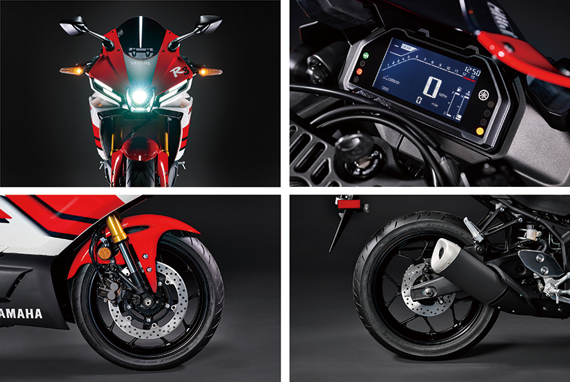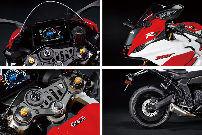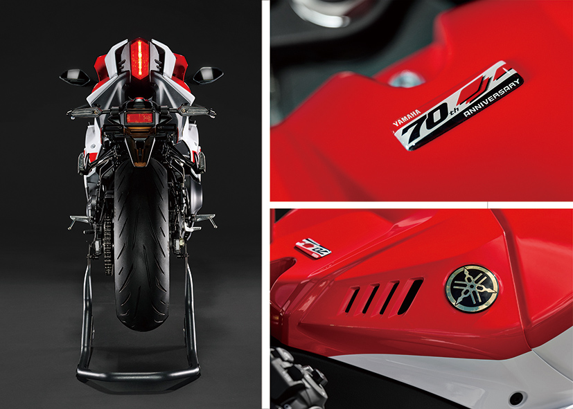 Yamaha七十周年纪念版的YZF-R“全家福”跑车系列的六款车型分别是,YZF-R125、YZF-R25、YZF-R3、YZF-R7、YZF-R9,还有北美市场销售的YZF-R1等市售车型。而曾经热销的600c.c.直列四缸跑车YZF-R6,因街道版本暂时停产,因而未进行更新,但YZF-R6赛道基础版本仍然在售。