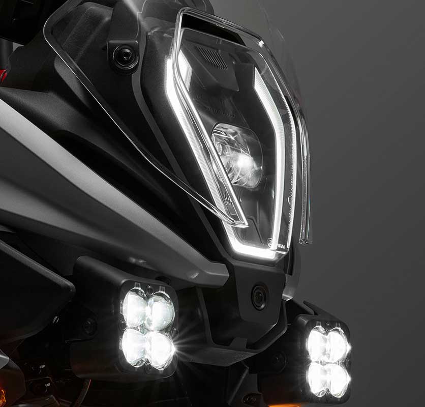 考虑到长途骑乘的舒适性,新车配备了20.5L的大油缸,805mm座位高的分离式鞍座,7英吋全彩TFT仪表板,胎压监测系统(TPMS),turn by turn导航(透过蓝牙)和全LED照明(包括标配的日间行车灯)。令人印象深刻的装备水准还不止于此。还配备了护手、引擎和油底壳护板(尽管新车并非为越野而设计,这些护板似乎有点多余)。