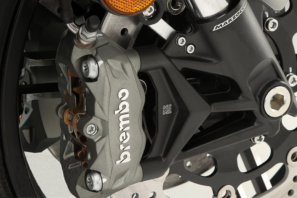 作为一款面向公路的旅行车,前后均配备了Marzocchi悬挂系统,前方为43mm倒立式可调的前叉,后悬挂为预载可调的单筒减震器。同时配备了面向公路的17英吋铸造轮框,并装配了Maxxis MaxxVenture轮胎。制动系统采用前320mm双煞车碟配Brembo径向四活塞卡钳,后轮是260mm煞车碟配Brembo单活塞卡钳。