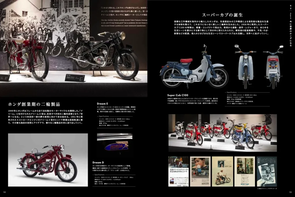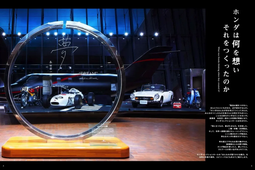位于栃木县芳贺郡茂木町的 Honda 官方展示设施。馆内陈列著众多名闻遐迩的二轮、四轮及赛车等名车,是一个能亲身感受“梦想与挑战故事”的殿堂。这是一个能感受 Honda 原点、并获取勇敢迈向未来的地方——诚挚邀请您透过本书尽情领略其魅力。