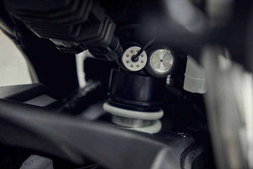 前悬挂系统:Showa EERA电子避震,手动调校阻尼,行程130mm