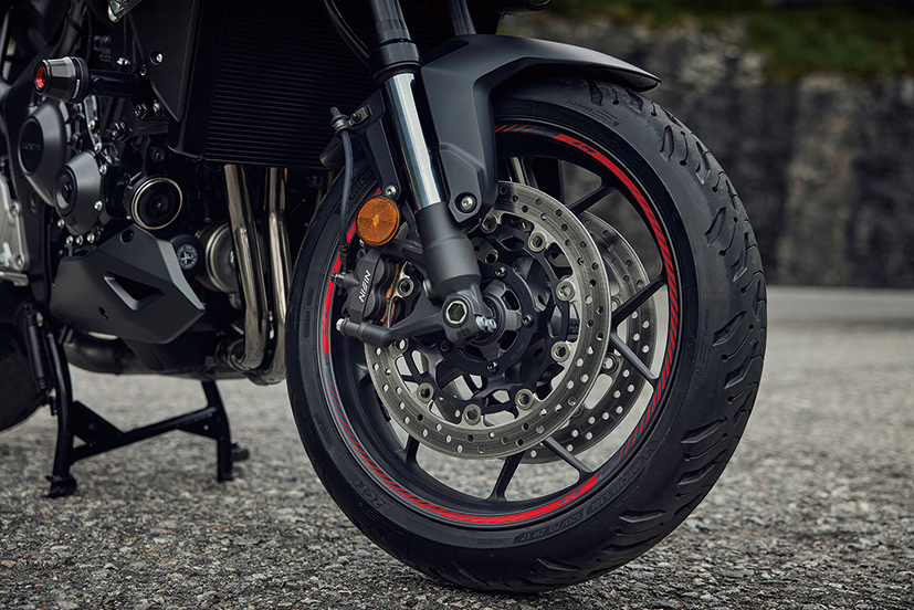制动方面,前轮使用双310mm钻孔碟配Nissin 四活塞卡钳,后轮则为单碟配Nissin单活塞卡钳,整体制动力道充足而易于控制,符合长途骑乘对稳定感的需求。再加上可调风挡、加热手把、5英吋TFT全彩仪表及智慧连接功能,CB 1000 GT在实用性层面已达到现代GT车款应有水准。
