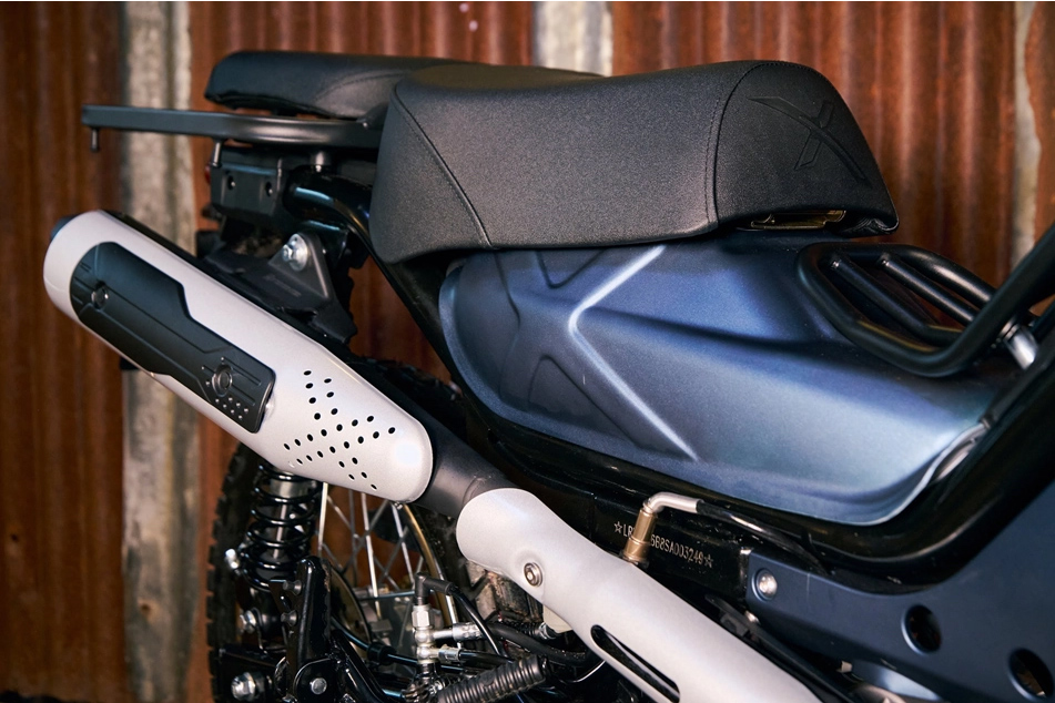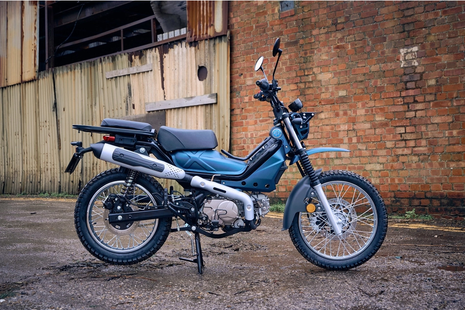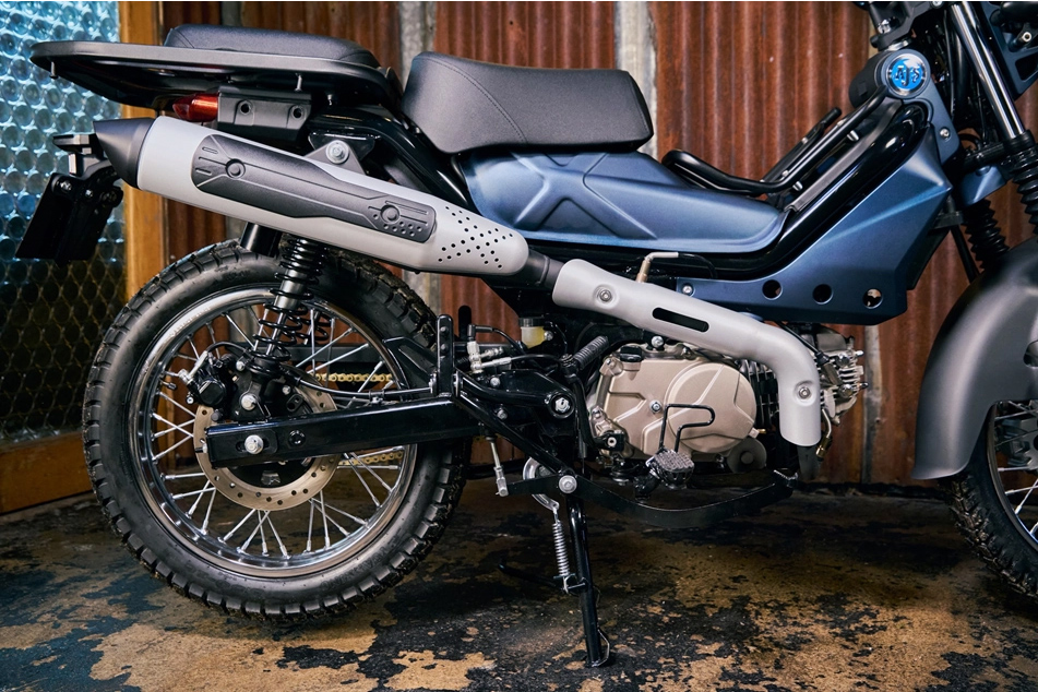 新车同时具备电启动与脚启动功能,采用4前速波箱并配备离心式半自动离合器。这意味着她省去了左手离合器拉杆,而是像其致敬对象Honda CT 125一样,透过左脚的双向波棍(前后踩)进行换档。为了适应越野需求,其离地间距达190mm,排气管采用右侧高置式设计,紧贴乘客位下方。此外,车辆还标配大架,方便日常维修保养。
