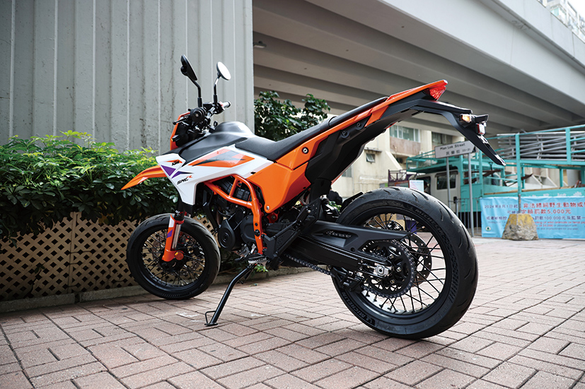 Supermoto喺香港市场虽然属冷门选择,对手亦几乎只有同集团Husqvarna嘅401 SM,但其实呢个车种有极多适合香港嘅优势:轻量易泊、270mm高离地距轻松应付路肩同减速壆、17吋街胎雨天够稳。有得拣,总好过冇选择。