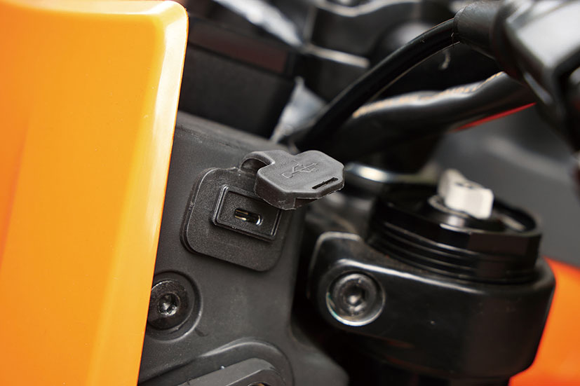 如果话ABS系管煞车,咁MTC循迹控制系统就系管加速。当电脑侦测到后轮转速快过前轮时,MTC会喺千分几秒内微调引擎输出,防止出现高压抛车意外。MTC提供三段设定:标准模式介入最快最严格,确保尾辘紧贴地面;运动模式会容许后轮有一定程度嘅滑动,俾骑仕喺出弯时可以稍微大油门享受动力滑胎嘅快感;而关闭模式则完全解除封印,将所有动力交托喺右手。为咗令所有电控设定一目了然,车头换上全新4.2吋TFT彩色仪表板,采用防眩光玻璃,日照下依然清晰,手把上嘅Joystick可以快速切换模式并设有记忆功能,仲支援KTM connect App连接手机导航及听歌。