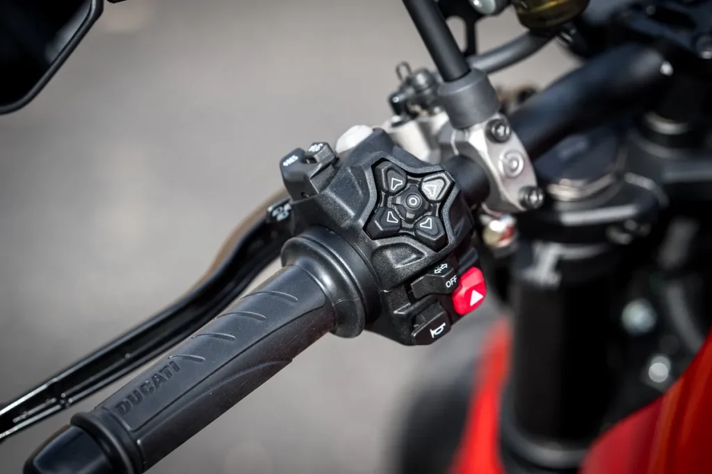 透过新设计的花瓣状摇杆进行各种仪表操作。包含支援弯道感应的 ABS、循迹控制、孤轮抑制、引擎煞车控制等电子控制设定都能轻松完成。
