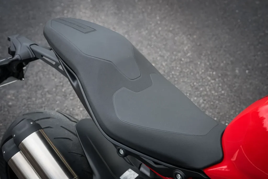 前后一体式的新型座垫让身体更容易移动,增加了骑乘姿势的自由度。座高较以往降低了 5mm,且横向宽度也变得更加纤薄,因此足著性相当良好。后方印有压花标志,隐约展现出高级质感。