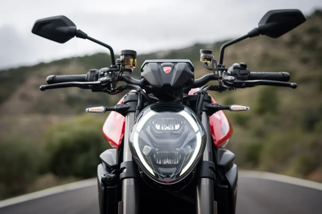 全 LED 头灯具备现行 Ducati 街车特征的双“C”字型照明形状。两侧的 DRL(日行灯)加入了让人联想到 Panigale V4 的切口设计。