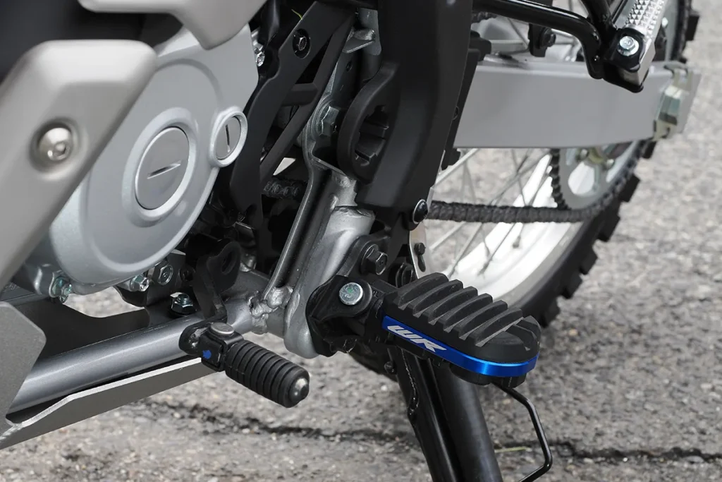 WR125R 后悬吊采用连杆式结构,透过更换连接避震器与摇臂的连杆,即可达到降低车高效果。