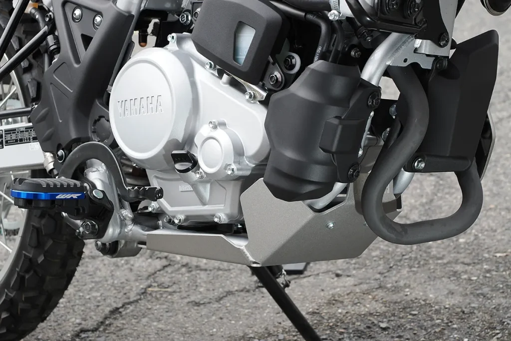 新发表(在大阪摩托车展前一天) 的 3mm 铝合金引擎下护板,可保护引擎与车架免受碎石与路面冲击。