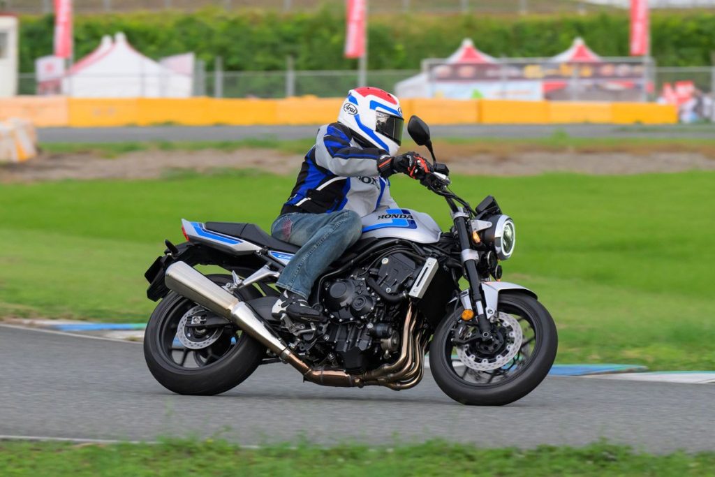 活动前一天,他在邻近熊本制作所的 HSR 九州赛道试乘了 CB1000F。