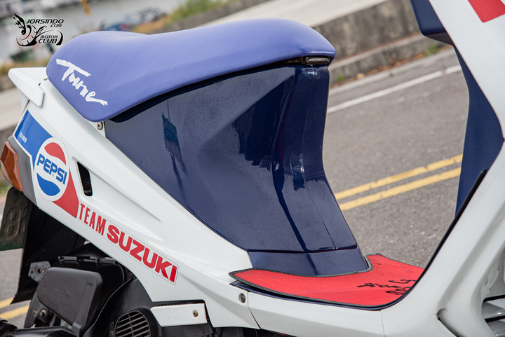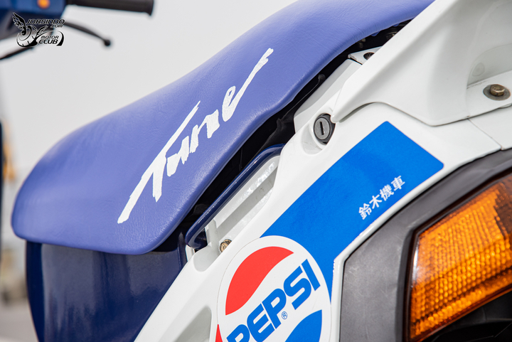 貼合車身線條的 TEAM SUZUKI 塗裝,加上代表時尚潮流的 PEPSI 商標與坐墊的 TUNE,無怪乎駿 50 百事可樂特仕版會是許多 SUZUKI 老車迷鍾情不已的車款。