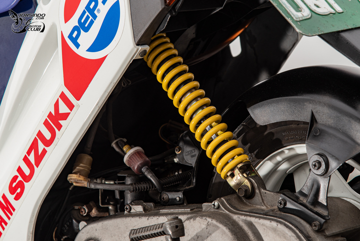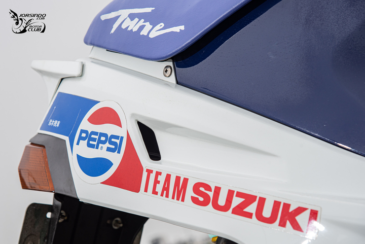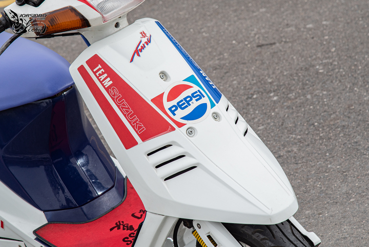駿 50 又帥又好騎,可是讓人留下最深記憶點的卻是這台百事可樂特仕版,鮮豔的藍、紅、白配色,以及車頭大大的「PEPSI」百事可樂商標,都讓這台特仕版駿 50 更加迷人,不過很有趣的是這台百事可樂特仕版可是「台灣特有版本」!當時 GP500 騎乘 SUZUKI 戰車的 Kevin Schwantz 勝場連連,鈴木機車特別與 Pepsi 洽談合作,推出了這台限量六千台的 Pepsi 駿 50,時至今日更顯稀有。