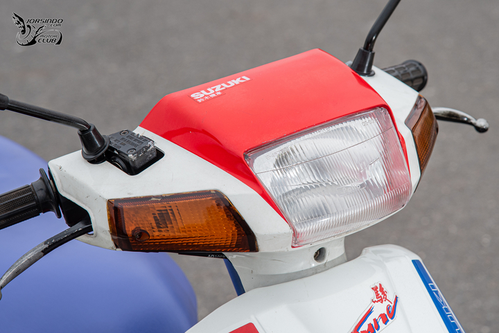 車頭上貼著的「SUZUKI 鈴木機車」可說是時代的眼淚,當時 SUZUKI 跟本田、山葉採用一樣的海外經營策略,同時有兩家不同的廠商負責在台灣生產、銷售 SUZUKI 的車款,這兩間公司分別為「石橋機車」以及「鈴木機車」,由於種種原因,最終在 1990 年五月由石橋機車主導合併為現行的「台灣鈴木工業公司」,並獨佔 SUZUKI 車款的製造與銷售至今。