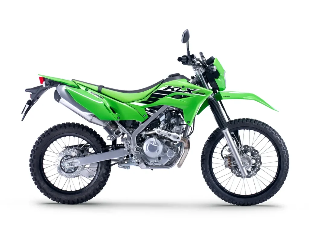 2019年推出的KLX230搭載了232cc的四行程單缸OHC引擎,用於公路越野。裝備了21英吋的前輪和大型頭燈,兼顧了越野性能和實用性。