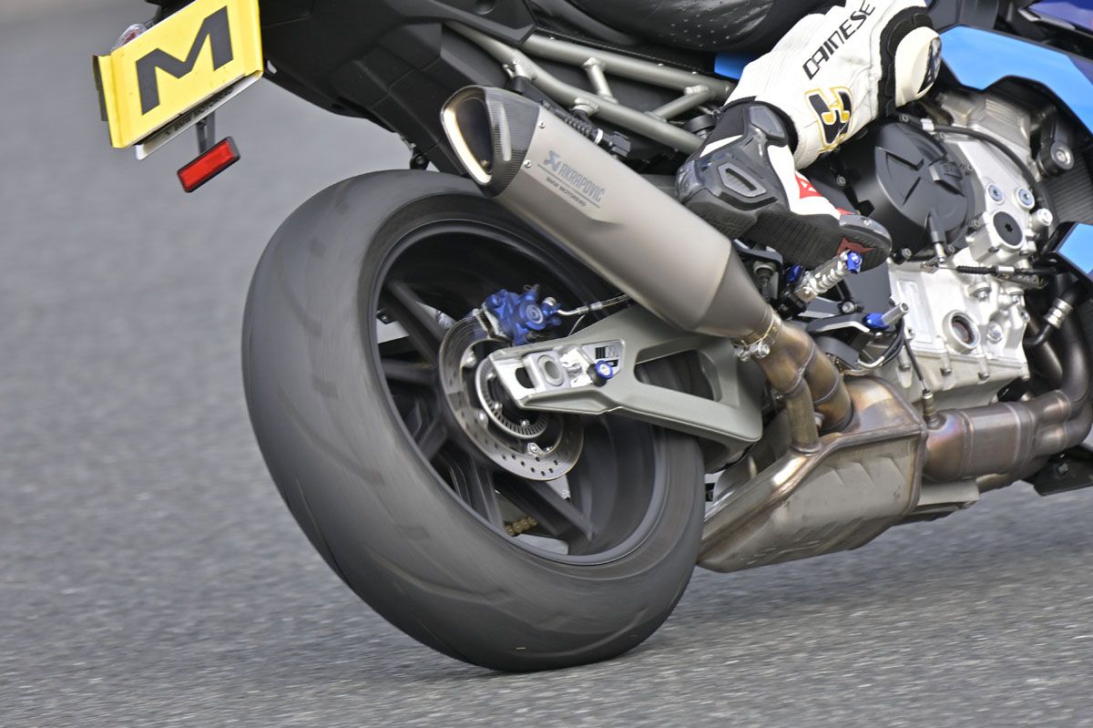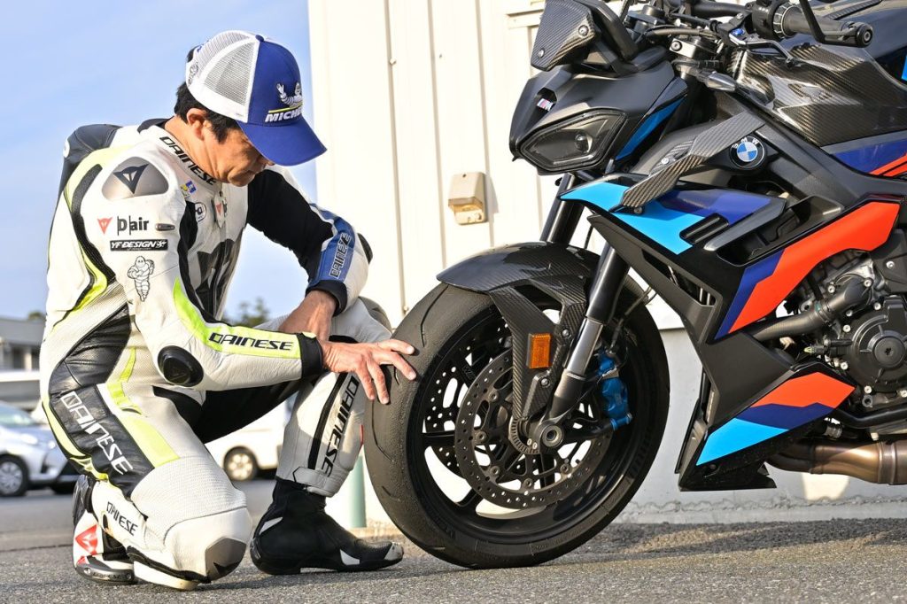 原田哲也將 POWER GP2 安裝在擁有 218ps 馬力的超級街車 BMW M1000R。雖然在連載期間因更換車輛等因素,所裝的 POWER GP2 也換成了新品,但兩套輪胎加總起來,原田哲也約行駛了 2700 公里。